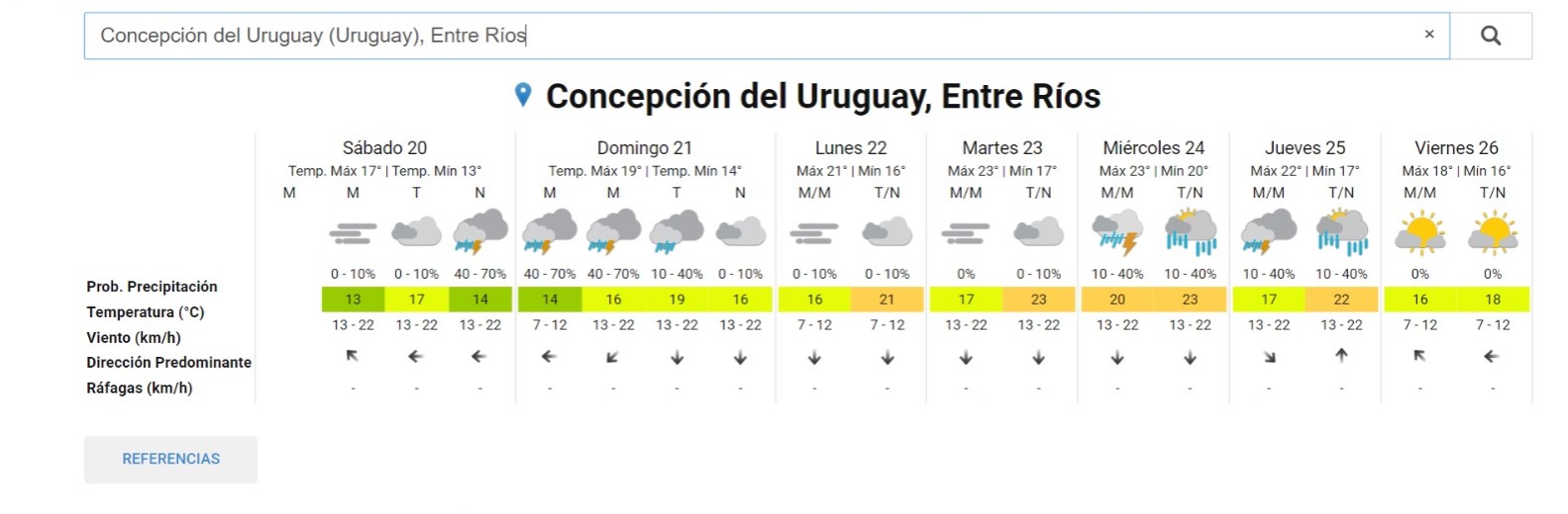 Para este sábado en Concepción del Uruguay se pronostica una temperatura mínima de 13° y una máxima de 17°. La humedad estará presente hasta que vuelvan las lluvias por la noche.