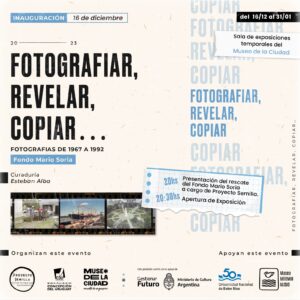 El cronograma previsto para la inauguración de este sábado 16 de diciembre incluye, a las 20hs., una presentación del Proyecto Semilla, a cargo de las museólogas Alejandra Heit e Ivana Silva, y la apertura de la sala de exposición a las 20.30hs. En el mismo marco, durante los días 16 y 17, se llevará adelante el taller “La visibilidad es una trampa”, coordinado por Marcos Goymil, destinado a fotógrafos, artistas visuales y personas que tengan un vínculo con las imágenes. Es libre y gratuito, a través de una inscripción previa, accesible mediante las redes sociales del museo (@museo.delaciudad) y Proyecto Semilla (@proyecto_semilla_)