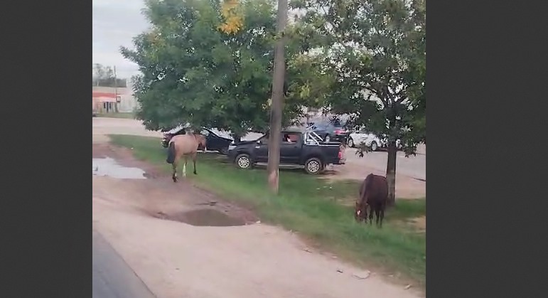 Lectores de La Pirámide enviaron imágenes donde pueden observarse caballos sueltos en la avenida Juan José Bruno, este viernes a las 8:30hs.