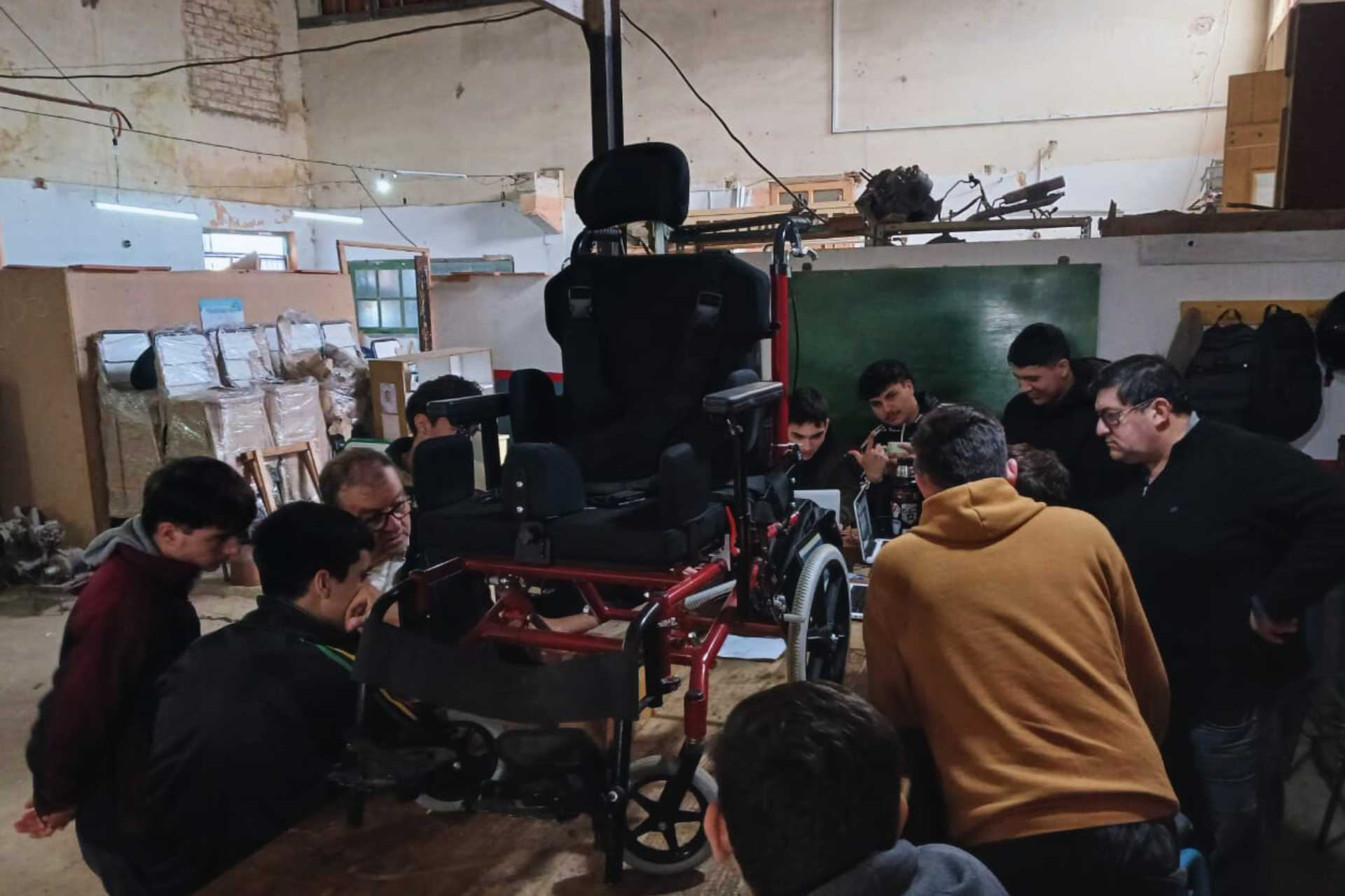Estudiantes de la Escuela de Educación Técnica (EET) Nº 3 de Concepción del Uruguay reutilizaron aeropatines en desuso a fin de darle movilidad a sillas posturales para personas con discapacidad motriz.