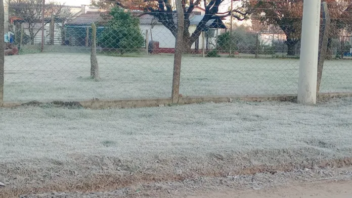 Esto provocó que en varios sectores de la ciudad, el día amanezca con heladas que cubrían los pastos y el asfalto.