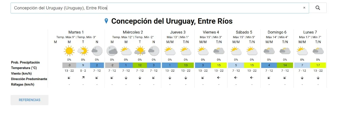 El viernes en Concepción del Uruguay, la temperatura mínima será de 3° y la máxima de 15°.