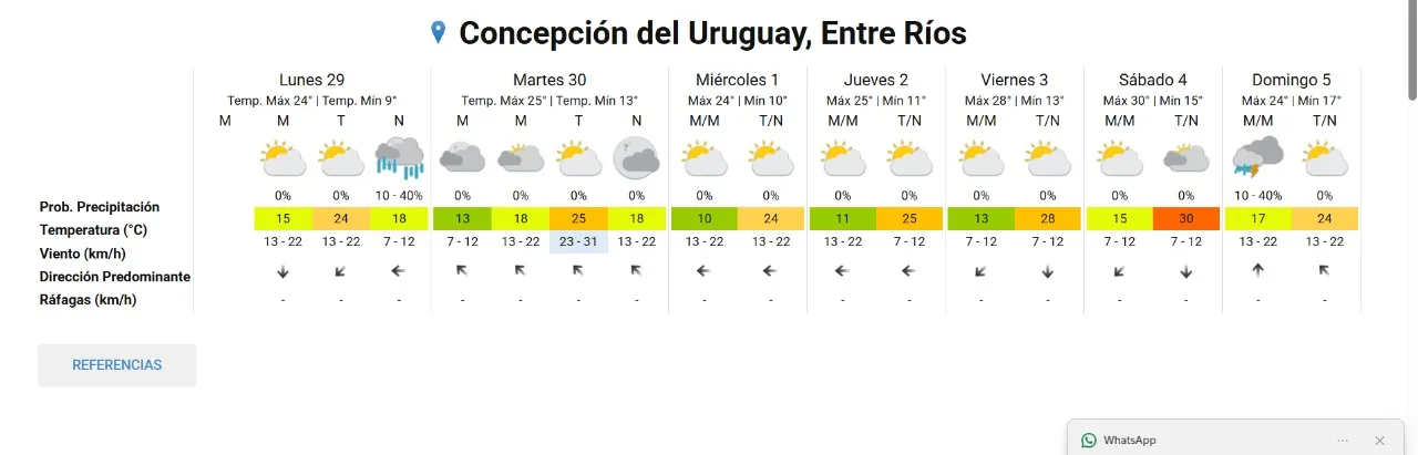 El miércoles en el inicio del mes de octubre, el SMN anuncia que la temperatura mínima será de 10° y la máxima de 24°. El cielo podrá estar mayormente nublado.