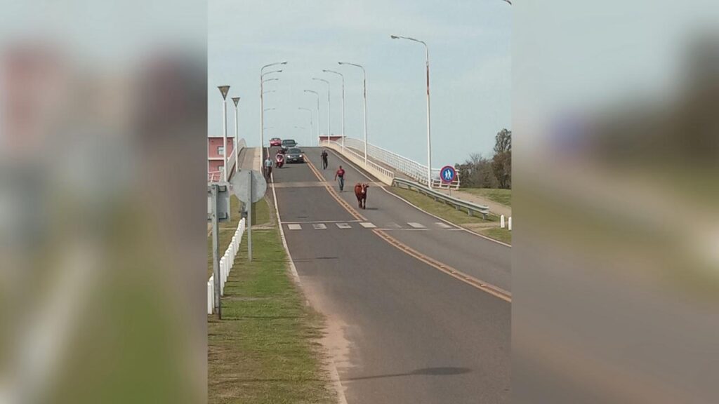 Esta mañana trabajadores de la Isla del Puerto divisaron un toro a pocos metros del pórtico de entrada.