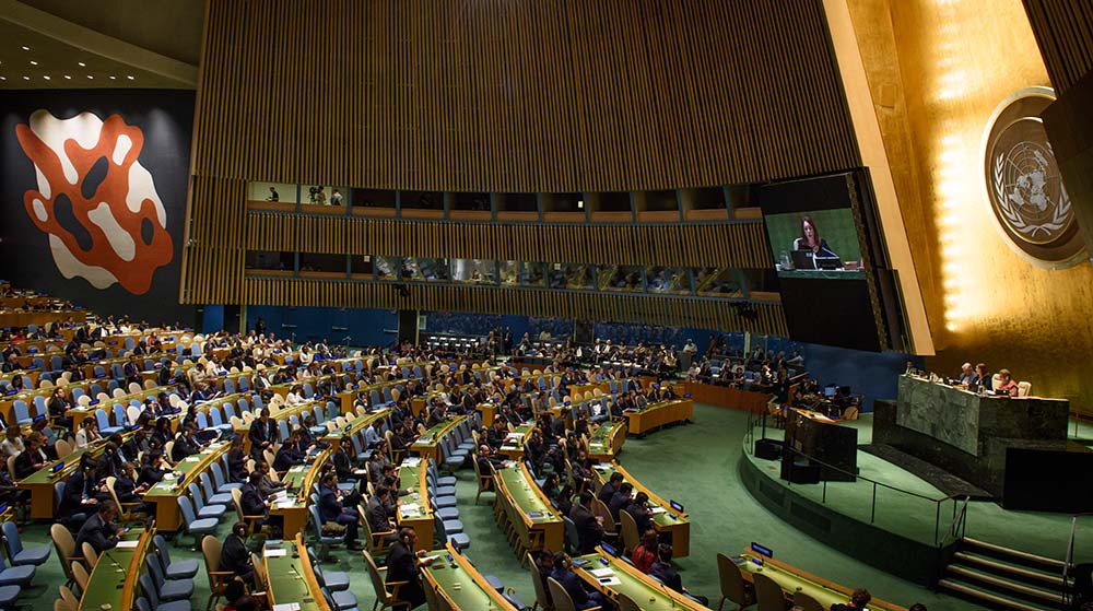 General Assembly Seventy-third session, 1st plenary meeting - Opening of the session by the President of the General Assembly - Minute of silent prayer or meditation - Appointment of the members of the Credentials Committee - Organization of work of regular session 73 of the General Assembly: letter from the Chair of the Committee on ConferencesThe General Assembly will also take note of the letter from the Secretary-General concerning 4 Member State(s) in arrears in the payment of financial contributions to the United Nations within the terms of Article 19 of the CharterDocuments: A/73/369 and A/73/367/Rev.1- Secretary-General Ant—nio Guterres - Mar’a Fernanda Espinosa GarcŽs (right), President of the seventy-third session of the General Assembly - Catherine Pollard, Under-Secretary-General for General Assembly and Conference Management.