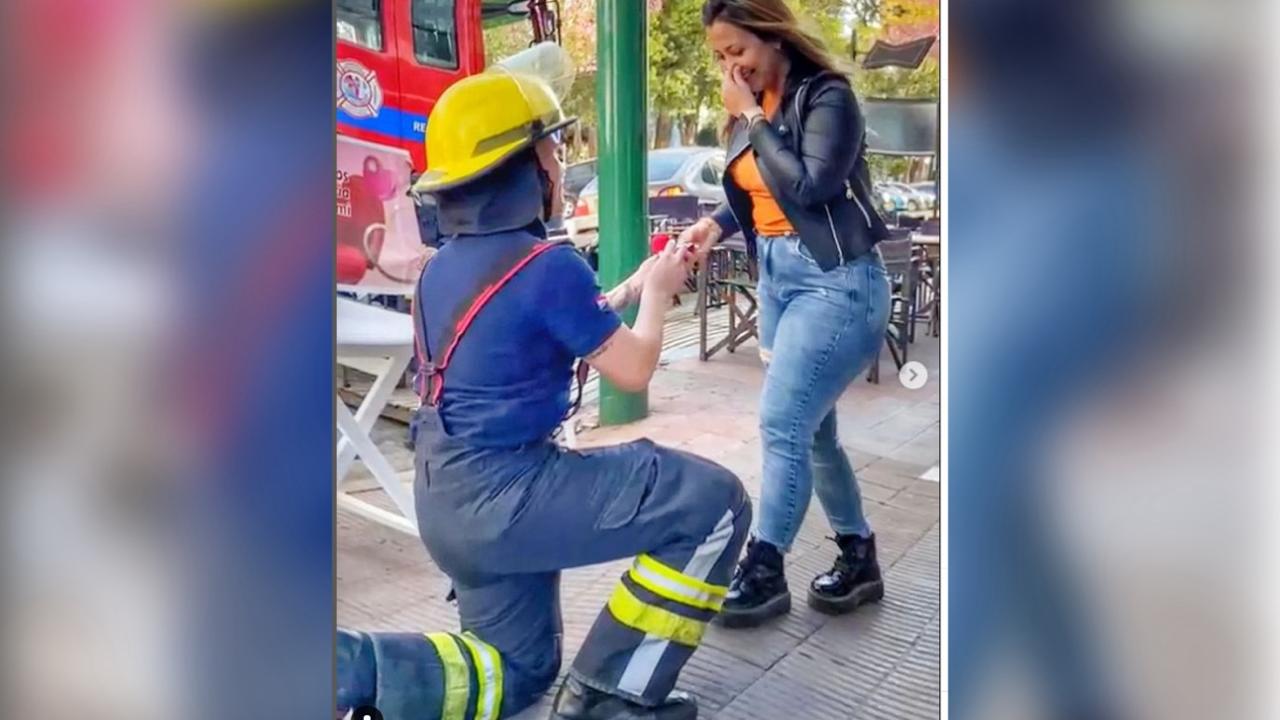 El bombero Voluntario Carlos Giménez de Concepción del Uruguay, le hizo pidió matrimonio a su novia tras varios años de relación.