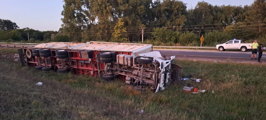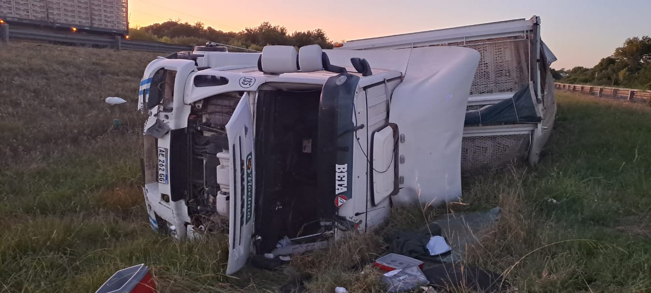 Según supo La Pirámide, en el lugar donde por causas que se tratan establecer, un camión Fiat Iveco, el cual circulaba por dicha arteria en sentido sur-norte conducido por un hombre de 27 años, despista hacia el Cantero central y vuelca el camión con acoplado.
