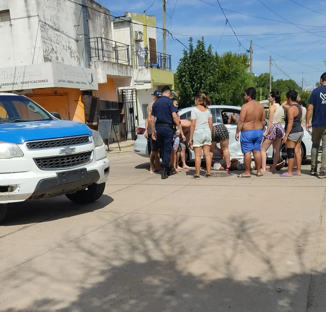 Por otro lado, la conductora de un automóvil Volkswagen Vento, de 39 años, indicó que circulaba de Este a Oeste por calle Estrada cuando fue impactada por el motociclista que se dirigía de Norte a Sur por Ruiz Moreno, colisionando contra la puerta del acompañante.