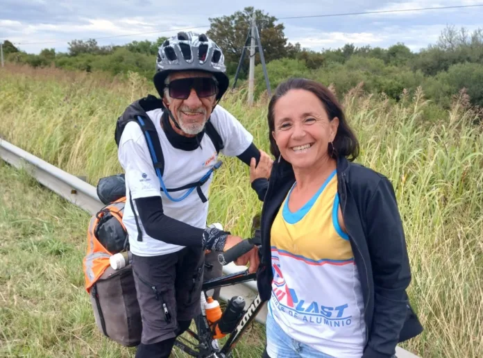 Originalmente, su sueño era realizar este viaje en moto, pero un accidente en 1999 lo llevó a cambiar de planes y optar por la bicicleta. Montado en su bicicleta, a la que cariñosamente llama “La Flaca”, continúa pedaleando con entusiasmo y gratitud por la vida, sumando kilómetros a su contador y cumpliendo metas, como visitar el glaciar en Ushuaia.