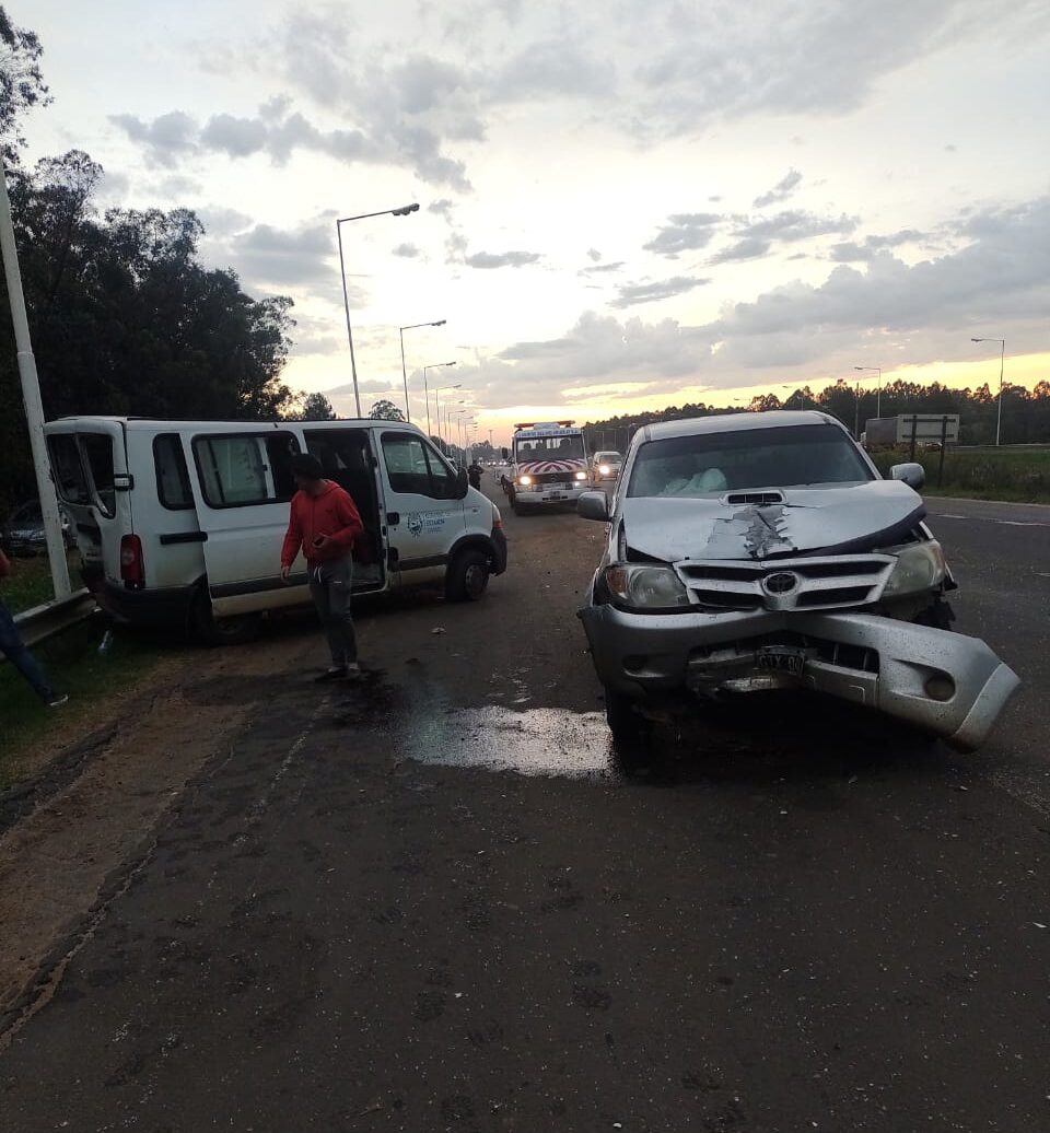 En la mañana de este miércoles, colisionaron un vehículo de transporte de la Municipalidad de Estancia Grande y una camioneta Toyota Hilux, en el kilómetro 244 de la Autovía Artigas.