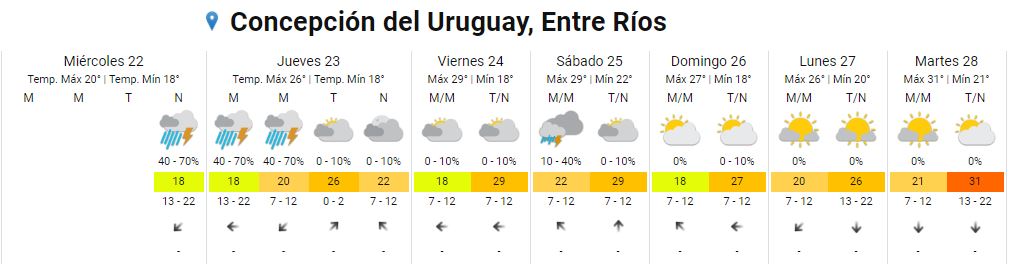 Para mañana está prevista una mínima de 18 y una máxima de 26 grados. Según el SMN, las temperaturas no superarían los 29 grados incluso hasta el próximo lunes, mientras que el martes volvería la máxima de 31.