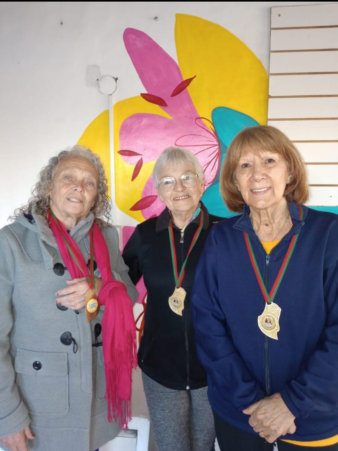 Felicitaciones por su destacada participación en bochas a Luis Riera y Carlos Minatta y a Emma Inda en canto solista.