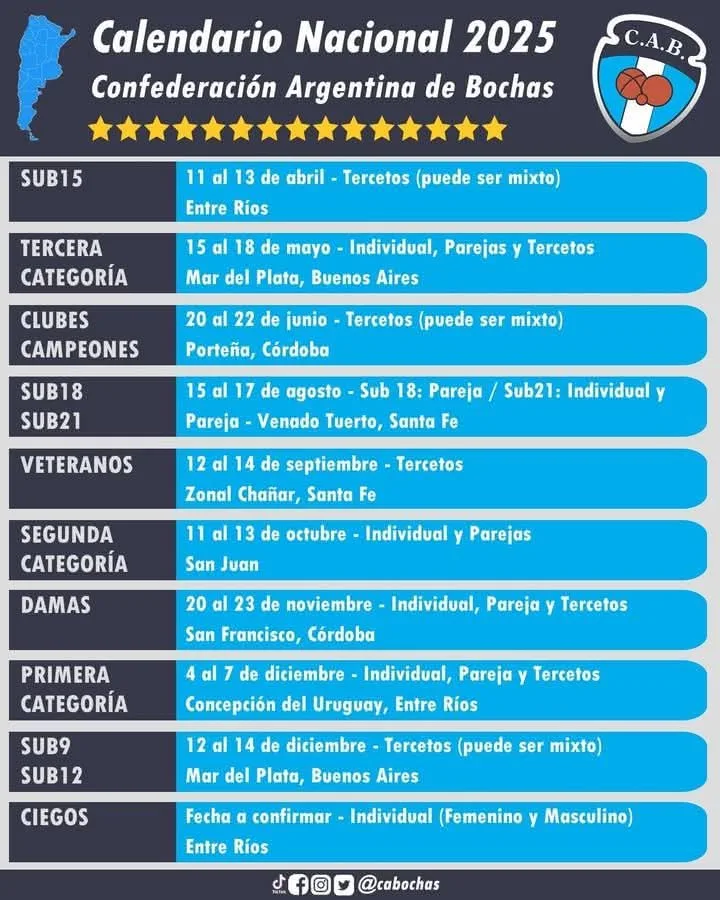 El evento forma parte del calendario 2025 de bochas en Argentina, que promete ser un año destacado para este deporte.