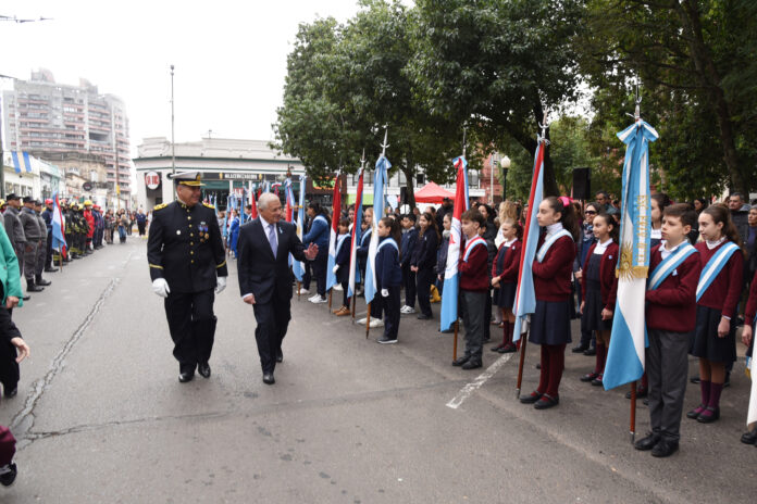 Las banderas de ceremonia participaron tanto del Tedeum como del acto central, del cual también formaron parte la Agrupación “25 de Mayo”, en tanto la Banda de Música del Batallón de Ingenieros Blindados 2 interpretó el Himno Nacional y la Marcha de Entre Ríos. Las palabras alusivas estuvieron a cargo del coordinador del Museo de la Ciudad, Pedro Fruniz; y de Gisela Benítez, alumna de la Escuela Municipal de Artes y Oficios “Héroes de Malvinas”.