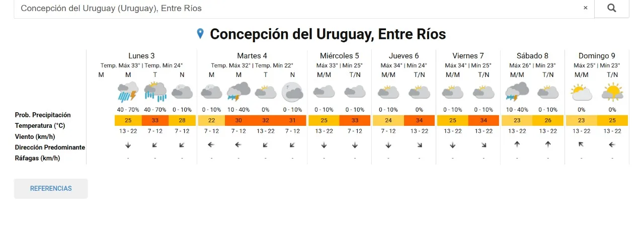 Según el Servicio Meteorológico Nacional, este lunes continúan las posibilidades de lluvias y tormentas en Concepción del Uruguay.