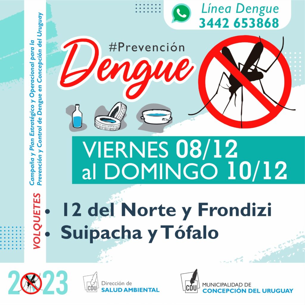 En el marco del Plan Estratégico y Operacional para la Prevención y Control del Dengue, continuará este fin de semana la Campaña de Descacharrización que lleva adelante la Municipalidad de Concepción del Uruguay.
