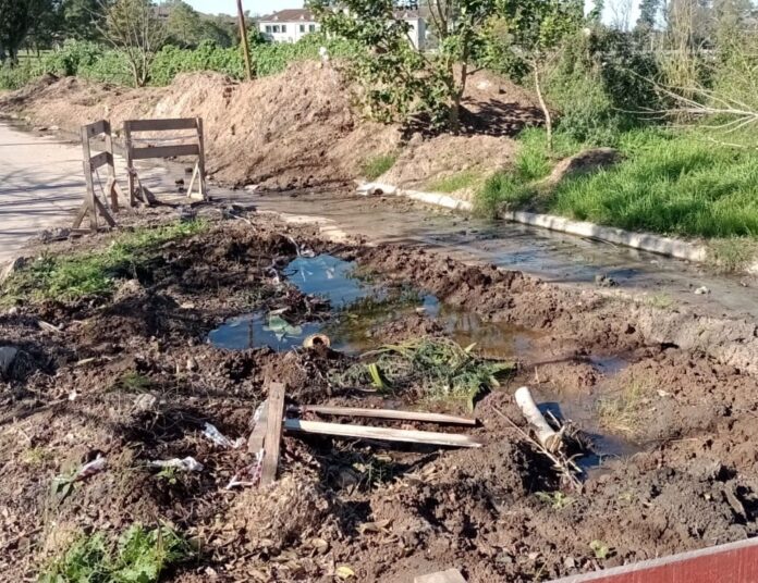 Por lo tanto se conformó un zanjón que afecta el normal tránsito vehicular por la zona y al llenarse de agua servida, produce fuertes olores cloacales.