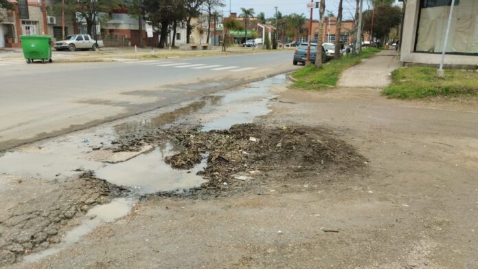 Lectores de La Pirámide enviaron imágenes donde puede verse que un bache en Bv. Yrigoyen y Celia Torrá, se encuentra tapado con agua estancada y basura.