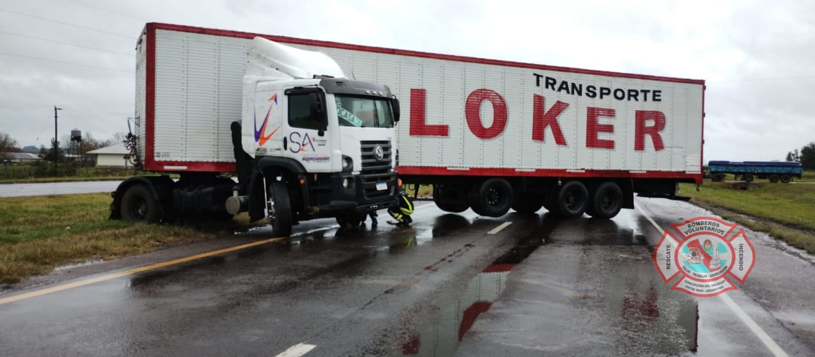 Despiste de camión en Autovía Artigas en el kilómetro 131 se reduce el tránsito en sentido sur a norte hacia Colón.