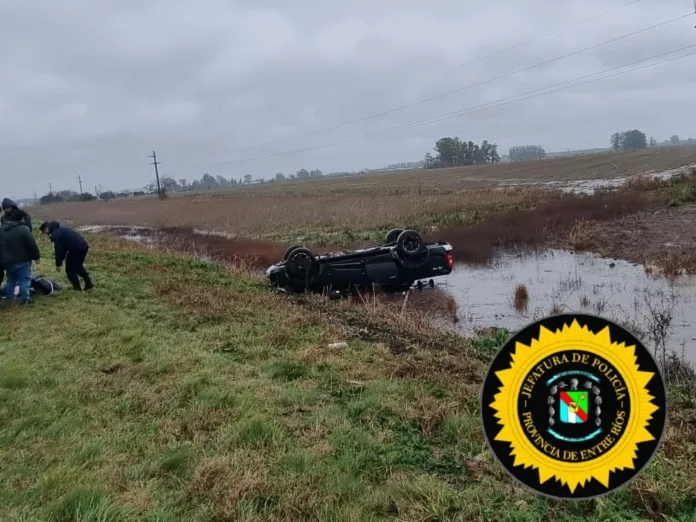 El incidente ocurrió alrededor de las 16:50 horas. Personal de Comisaría Basavilbaso acudió al lugar tras recibir un llamado por un supuesto siniestro vial. Allí, constataron el despiste de una camioneta Chevrolet S10, conducida por un hombre de 26 años. Lo acompañaba su esposa, de 28 años.
