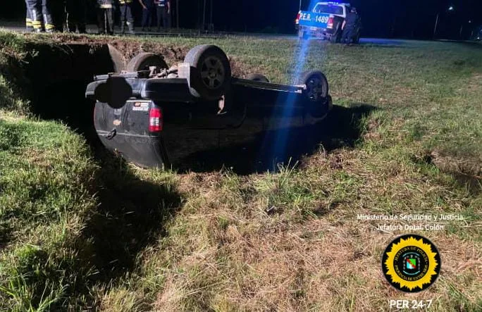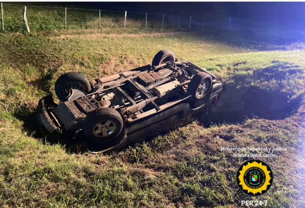Allí una Camioneta marca Chevrolet, modelo Blazer, conducida por un colonense de 43 años de edad, el cual se dirigía en sentido Oeste a Este, por causas a establecer habría perdido el control del rodado, despistando hacia el costado Sur de la arteria cayendo a una alcantarilla, volcando y terminando con sus cuatro ruedas hacia arriba.