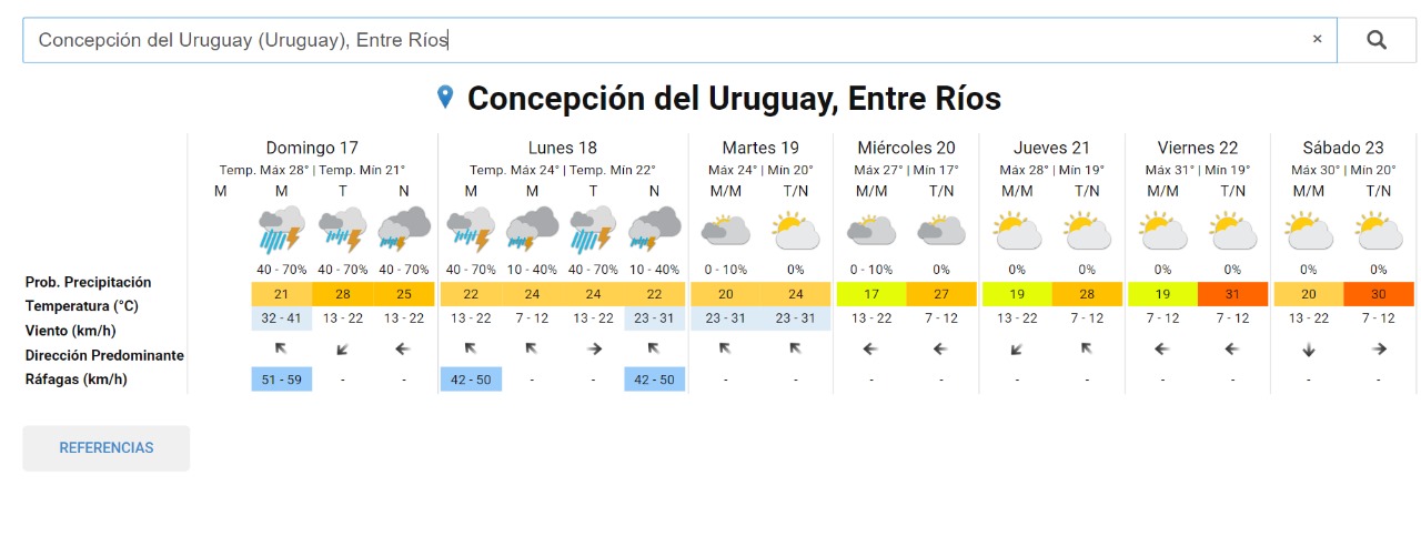 En tanto el lunes, en el inicio de la semana, se espera que la temperatura mínima sea de 22° y la máxima de 24°. Las lluvias y tormentas también estarían presentes.