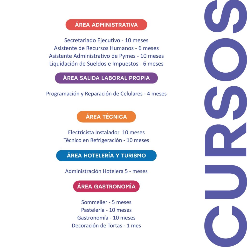 Los mismos son de capacitación laboral y cuentan con diversas áreas de estudio.