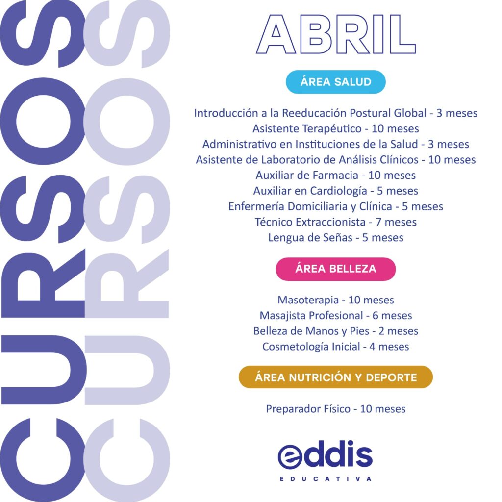 Desde Eddis Educativa lanzaron promociones para abril en los cursos online con talleres presenciales y autogestionados.