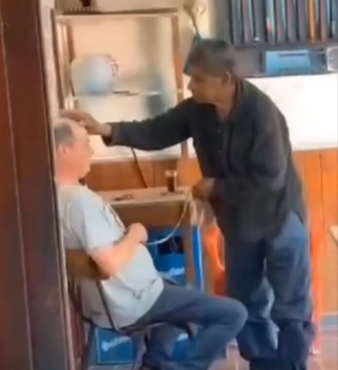 El bar uruguayense «La Fusta», en San Martín y Piedras, se viralizó en las redes sociales en las últimas horas luego de que un usuario compartiera un video en el que se ve a un grupo de personas disfrutando de los servicios del bar, mientras en una esquina un hombre le cura el empacho a otro.