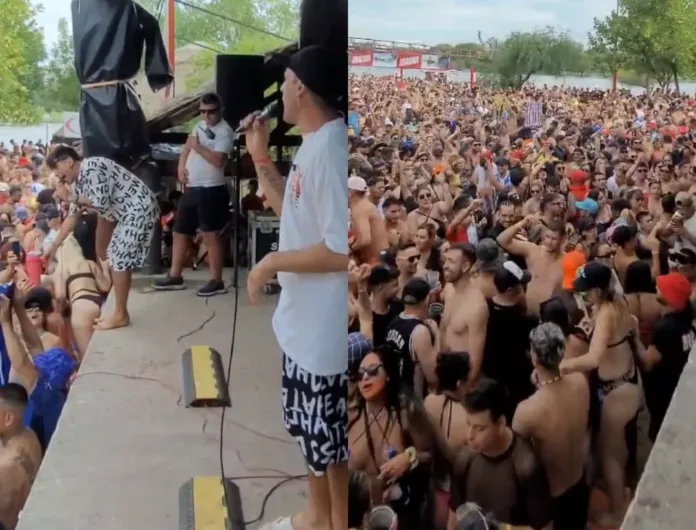 El conjunto llevó todo el ritmo a una playa colmada de jóvenes que disfrutaron del ambiente festivo.