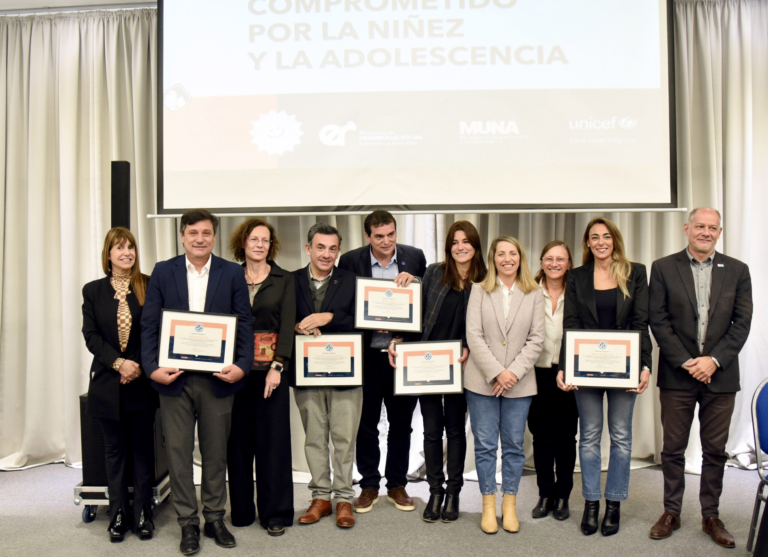Cinco municipios que cumplieron con la primera etapa de la iniciativa Municipio Unido por la Niñez y la Adolescencia (MUNA) recibieron el reconocimiento de “Municipio Comprometido”, en un acto que encabezaron en Paraná, la vicegobernadora Laura Stratta y la representante de UNICEF, Luisa Brumana.
