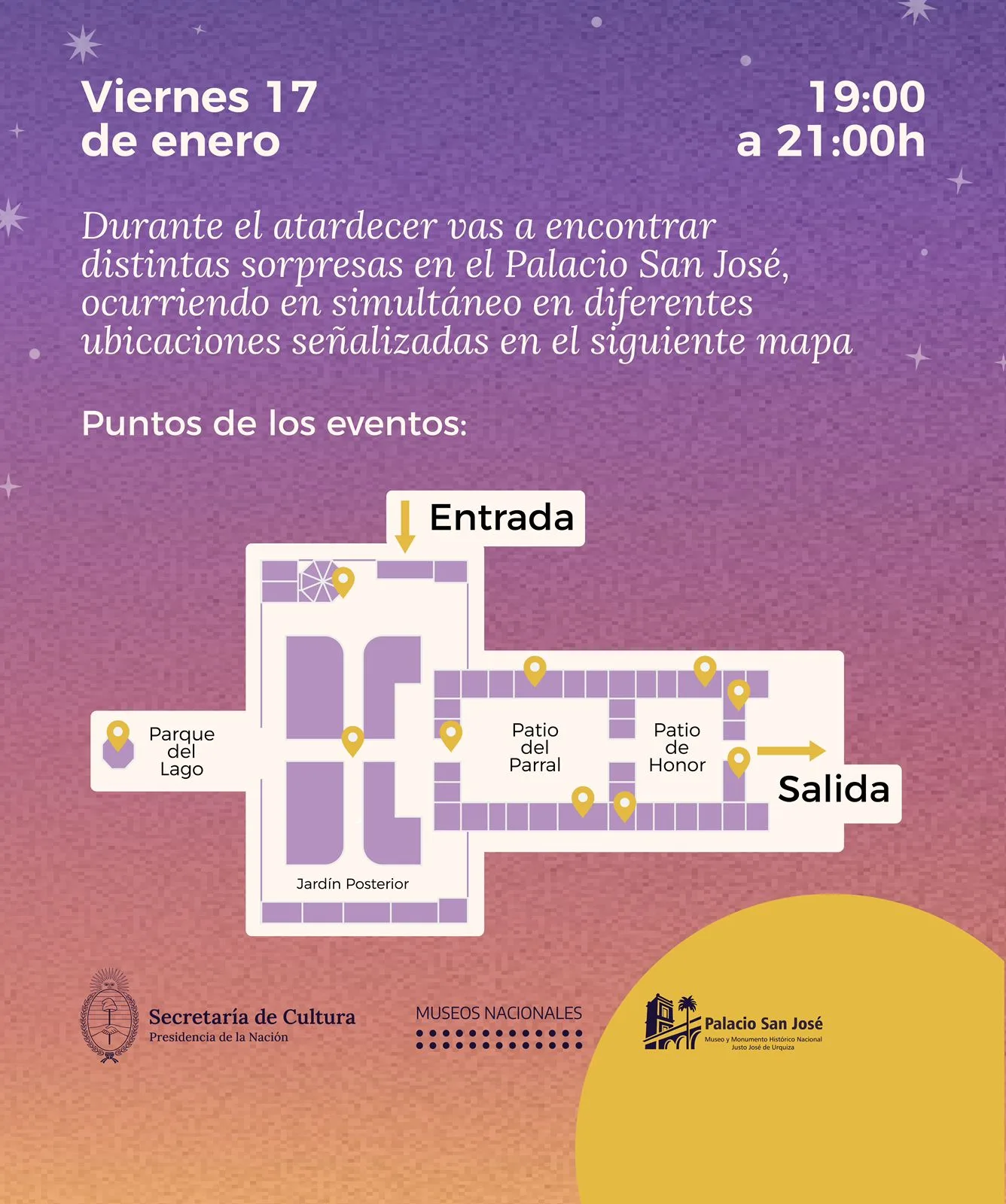 La primera fecha será el 17 de enero, de 19:00 a 21:00 horas, y la ubicación será el majestuoso Palacio San José, en Entre Ríos. Las próximas fechas serán confirmadas próximamente. No te pierdas esta oportunidad de experimentar la historia de una manera única y cautivadora.
