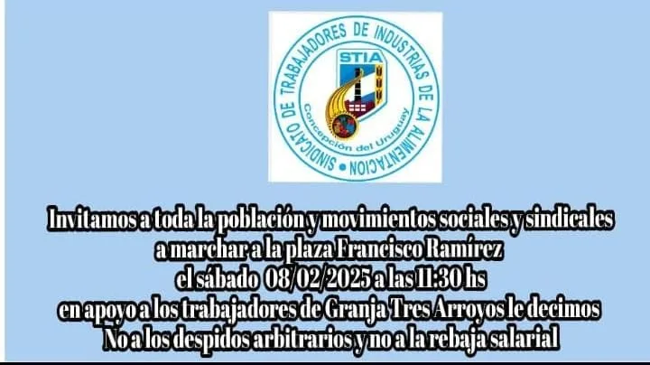 Por esta razón es que trabajadores nucleados en el Sindicato de Trabajadores de la Alimentación, familiares, amigos y la comunidad en general, organizan una marcha para este sábado 8 de febrero desde las 11:30hs. en Plaza Ramírez en apoyo y solidaridad.