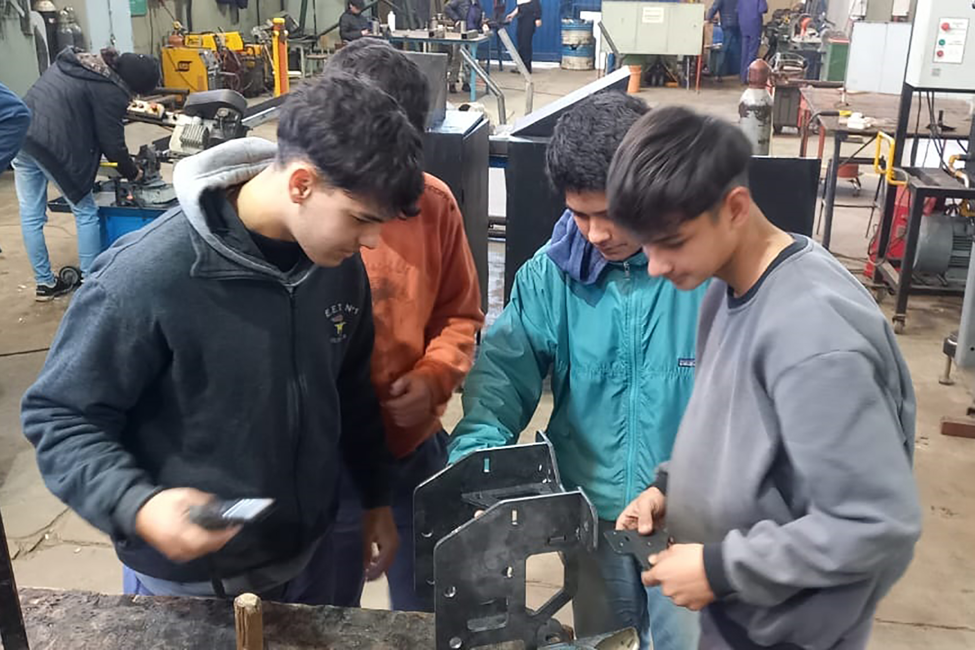 Luego, por medio del profesor de Oficina Técnica, Franco Mattiauda, se imprimió el plano y una vez impreso, en la asignatura Herrería, a cargo del profesor José Luis Buriano, los estudiantes de 5° Año del Ciclo Superior se encuentran fabricando la grúa en lo que respecta a trabajos de soldadura y armado. También la sección Mecánica se dedicará a las piezas torneadas.