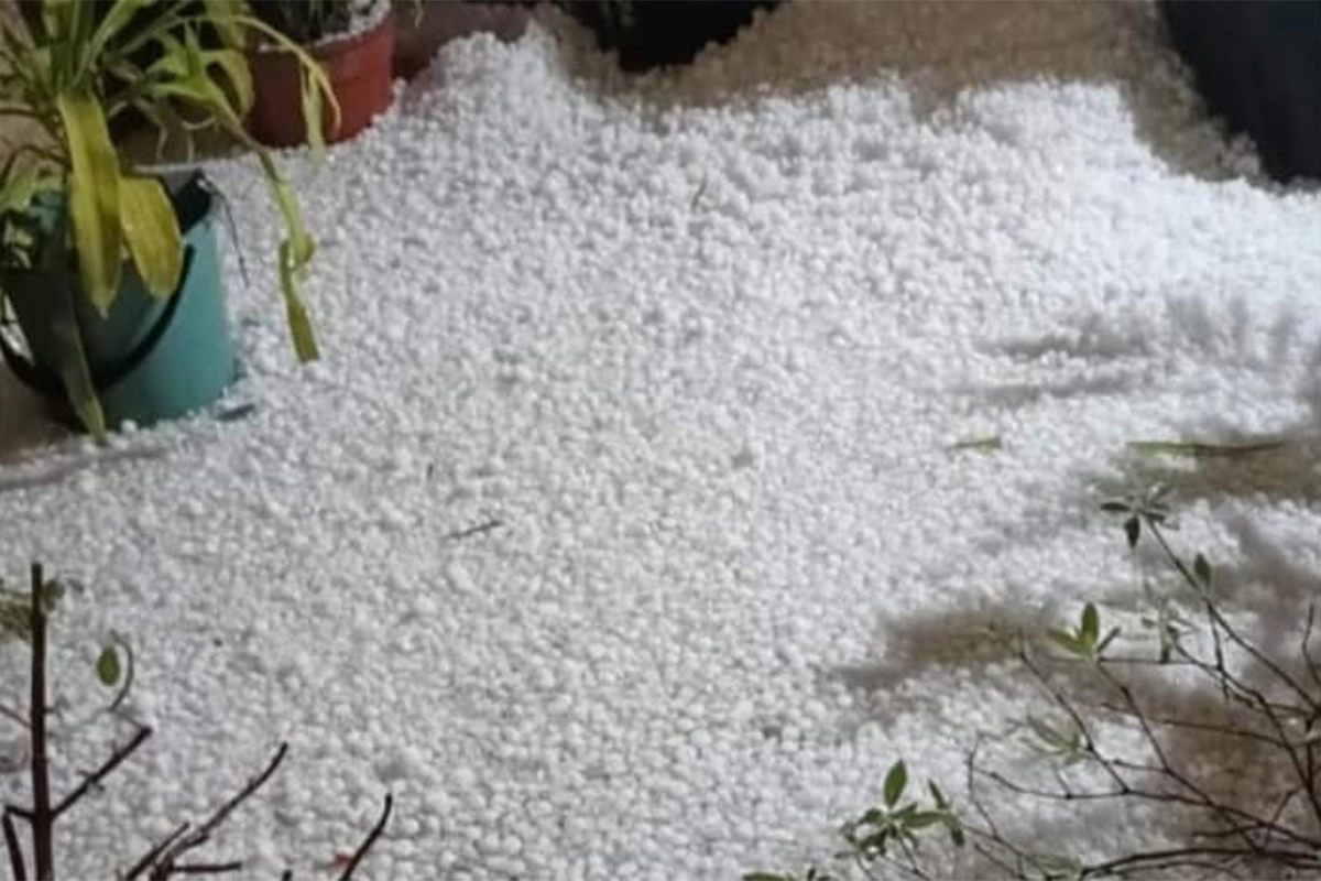 La tormenta dejó una cobertura significativa de granizo en la ciudad, que cubrió las calles, patios y jardines, transformando el paisaje habitual en una escena invernal.
