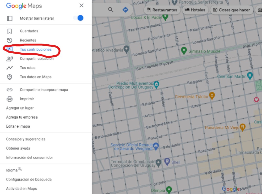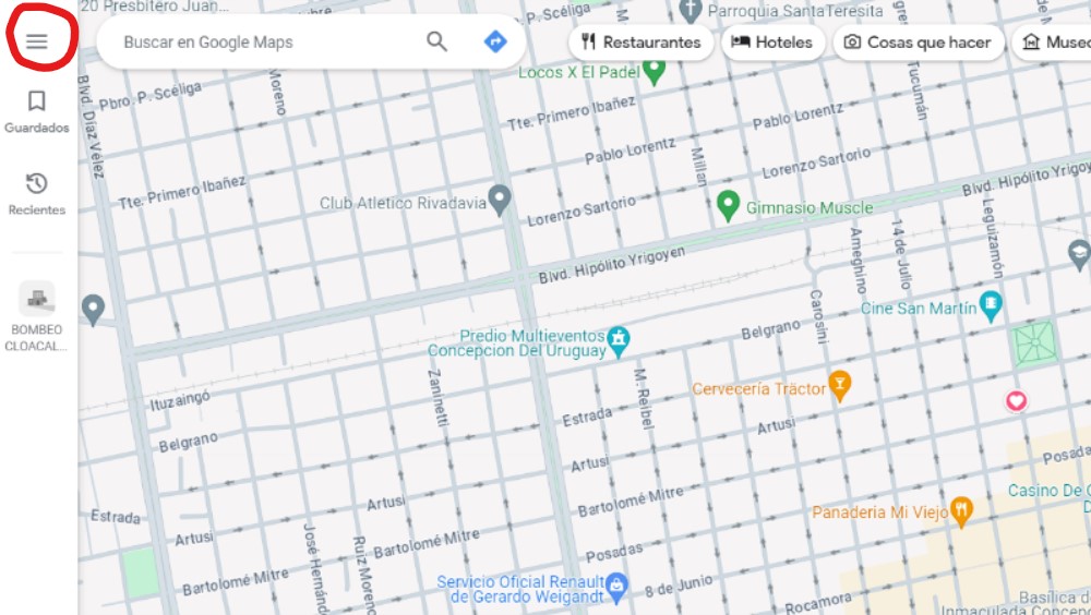 Para esto, en el Google Maps, podrá dirigirse al margen superior derecho y hacer click en las tres rayas que aparecen allí: