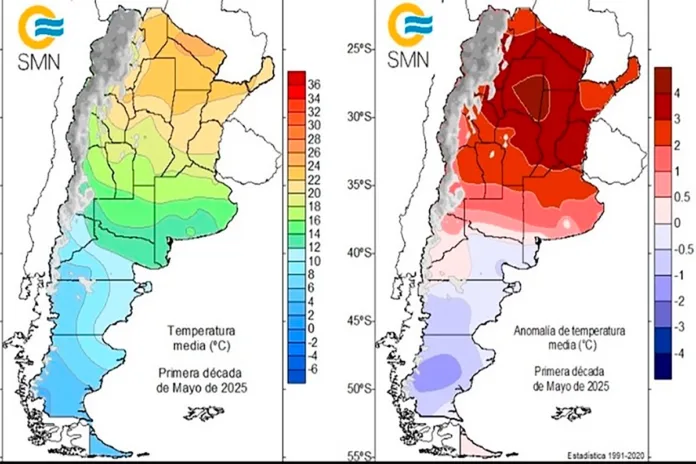 Según el SMN, en los primeros diez días del mes, en Santa Fe, parte de Córdoba, Entre Ríos, Santiago del Estero, Chaco y Formosa hubo 4 grados por encima de lo habitual y hasta 5 en algunas zonas puntuales.