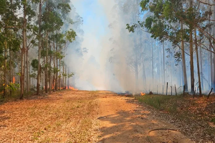 Un incendio forestal afecta unas 200 hectáreas al sur del departamento Concordia, en la zona de Calabacillas, distrito de Estancia Grande. Cuatro dotaciones de Bomberos Voluntarios están trabajando para sofocar el fuego, que avanza rápidamente por campos de eucaliptus, los cuales no contaban con la limpieza preventiva necesaria para evitar un siniestro de esta magnitud.