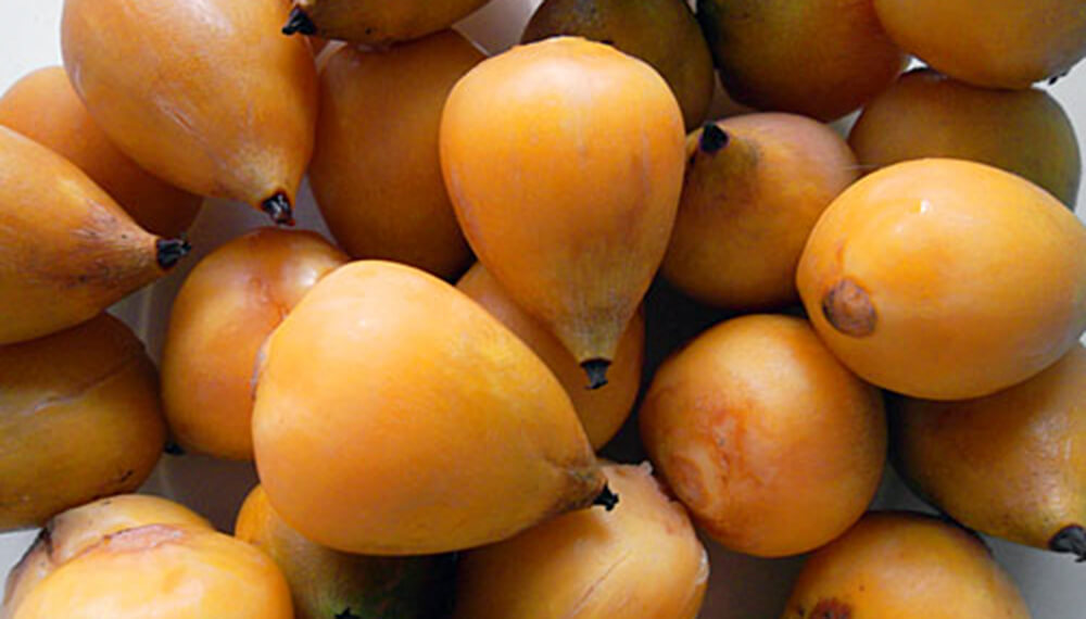 El fruto de esta palmera puede consumirse fresco o utilizarse para diversas preparaciones aprovechando su pulpa, semillas o fibra; habiéndose también encontrado evidencia de su consumo por parte de poblaciones originarias de la región que se alimentaban mediante la caza, la pesca, la recolección y la horticultura.