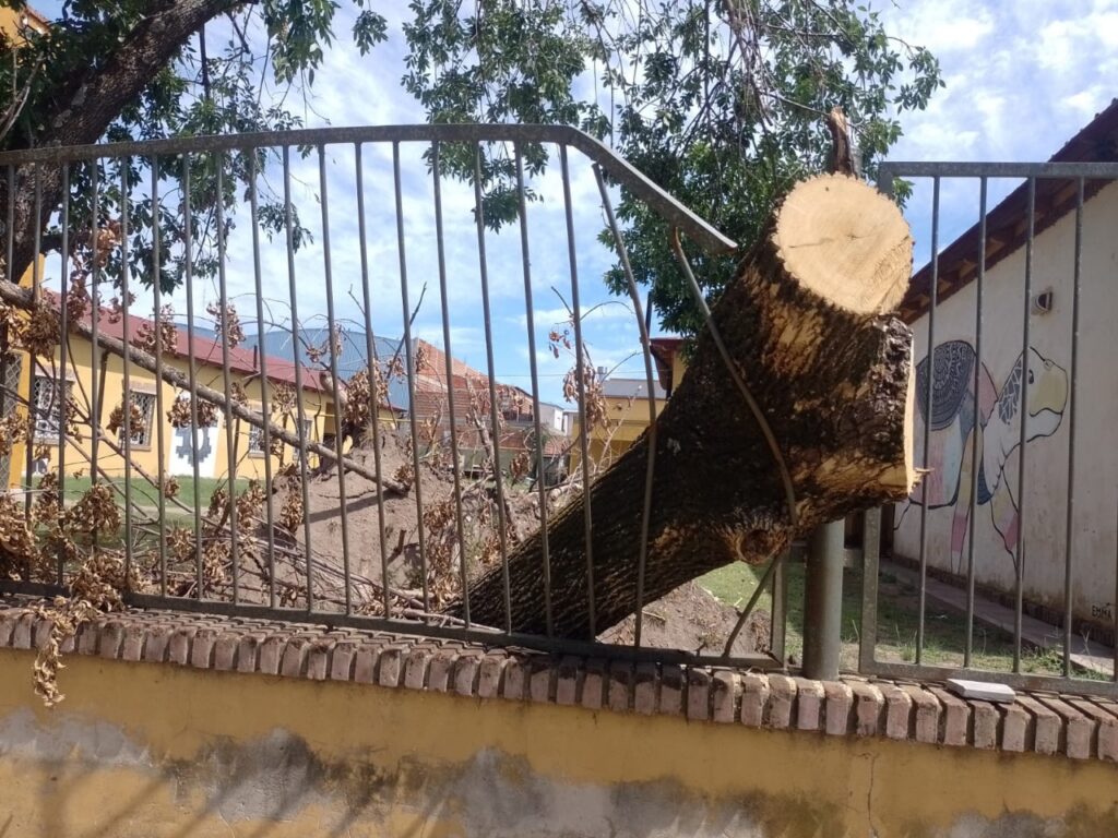 Tras los estragos causados por la última tormenta en enero, la Escuela N°116 “Misael Pereyra” en el barrio Planta Emisora de la ciudad sufrió la caída de un árbol y el daño de una reja.