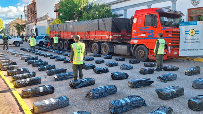 A principios de esta semana, integrantes de la Sección Seguridad Vial “Ceibas” dependiente del Escuadrón 56 “Gualeguaychú” realizaban controles vehiculares sobre la Ruta Nacional N° 12, a la altura de la localidad de Villa Paranacito, cuando advirtieron que un camión con semirremolque que se encontraba estacionado en cercanías al control emanaba un fuerte olor, característico al de marihuana, por lo que procedieron a efectuar el registro físico y documentológico del rodado.