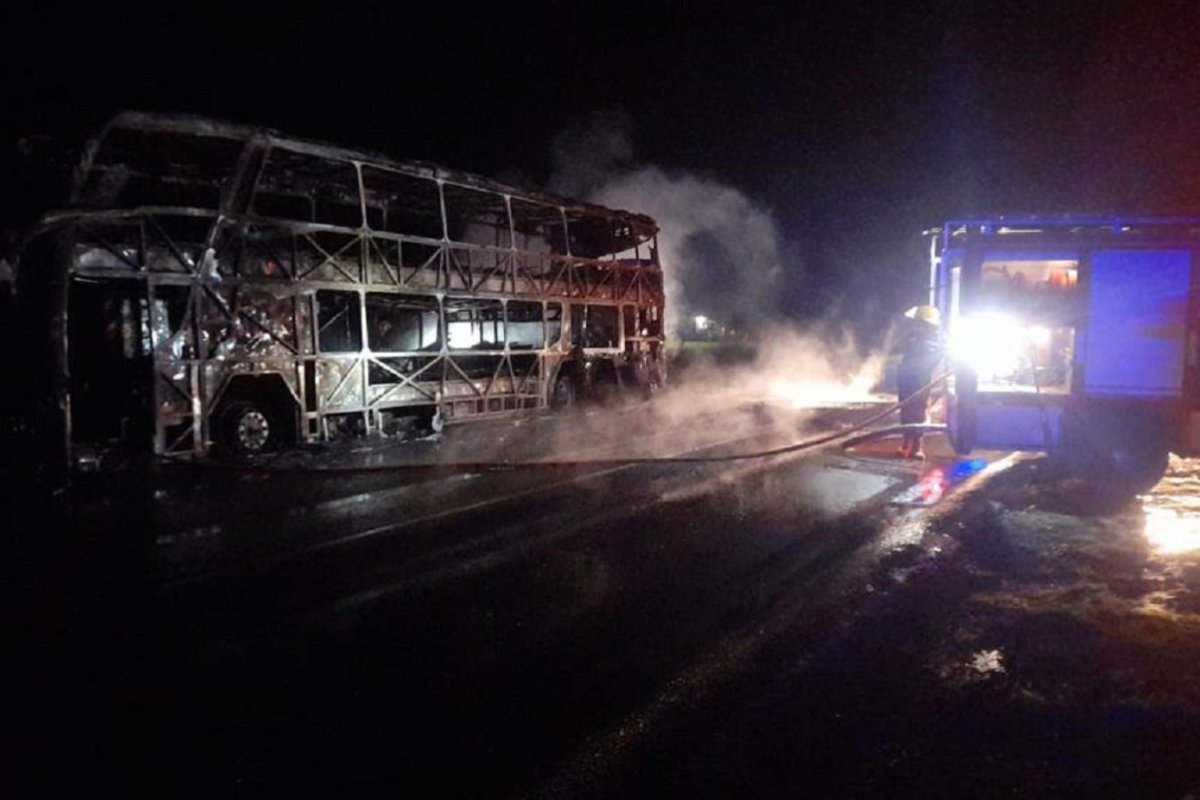 Cerca de las 2.30 de la madrugada, se declaró un incendio que rápidamente se generalizó por toda la unidad. Los 42 pasajeros del micro de larga distancia y sus tripulantes descendieron de inmediato y se pusieron a resguardo a la vera de la ruta nacional 136, sobre el kilómetro 18.
