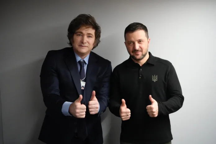 “Quiero expresar en nombre del pueblo argentino nuestro máximo apoyo al pueblo de Ucrania, a nuestro amigo el presidente Zelensky, ya que como defensores de la idea de la libertad repudiamos cualquier forma de violencia, ya sea entre individuos, pero en particular repudiamos la guerra como mecanismo ilegítimo para dirimir los conflictos entre naciones”, manifestó Milei en ese momento.