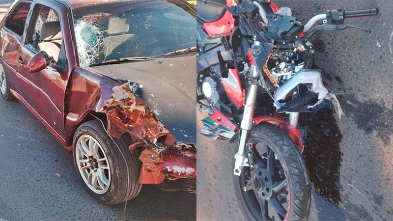 En dirección contraria, por la misma arteria, circulaba una motocicleta de importante cilindrada que terminó impactando contra el lateral derecho del auto.