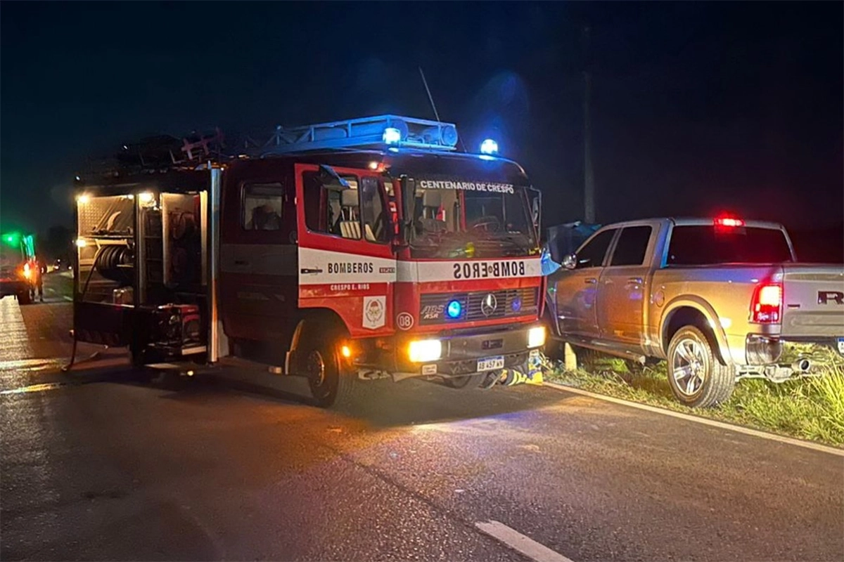 Un trágico accidente de tránsito ocurrió este martes por la noche en la Ruta 12, entre las localidades de Crespo y Colonia Merou. El mismo dejó como saldo una persona fallecida y otra gravemente herida.