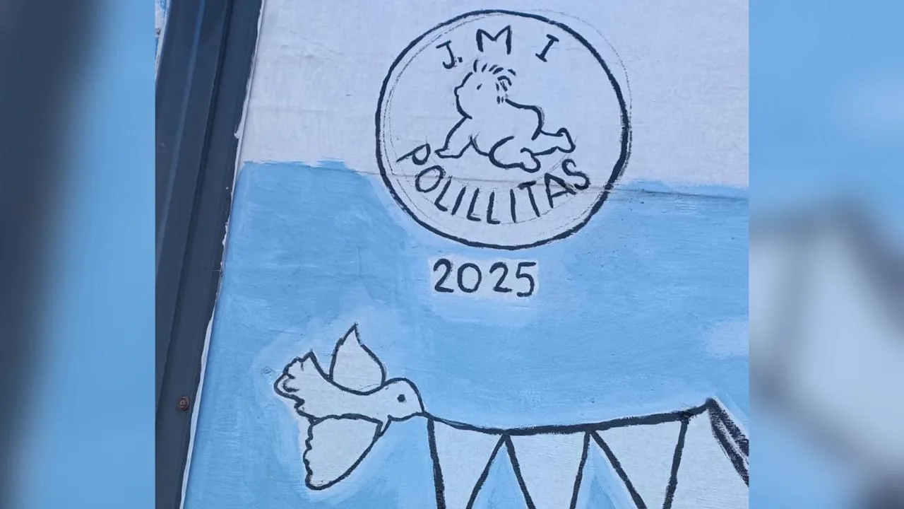 En esta oportunidad el retrato es alusivo al Jardín Materno Infantil Polillitas y allí pueden observarse a niños jugando y disfrutando del tradicional juego la Rayuela. Esta obra de arte se suma a otros murales pintados en el mismo lugar que se realizan cada mes de mayo en conmemoración del Día de los Jardines de Infantes. Todos se encuentran sobre una de las calles laterales del nosocomio, precisamente sobre Víctor Rodríguez.