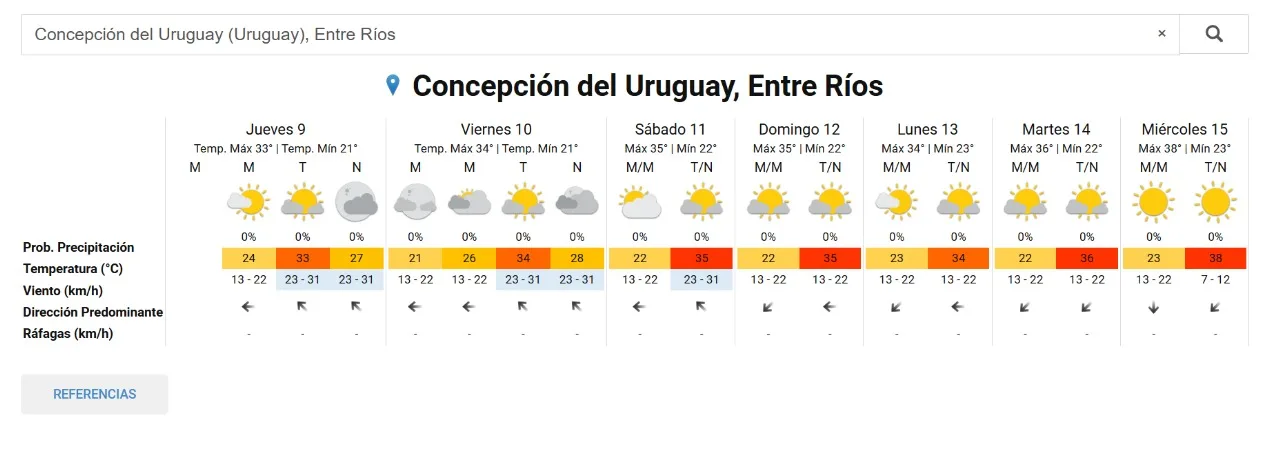 Pronostican 33° para este jueves en Concepción del Uruguay
