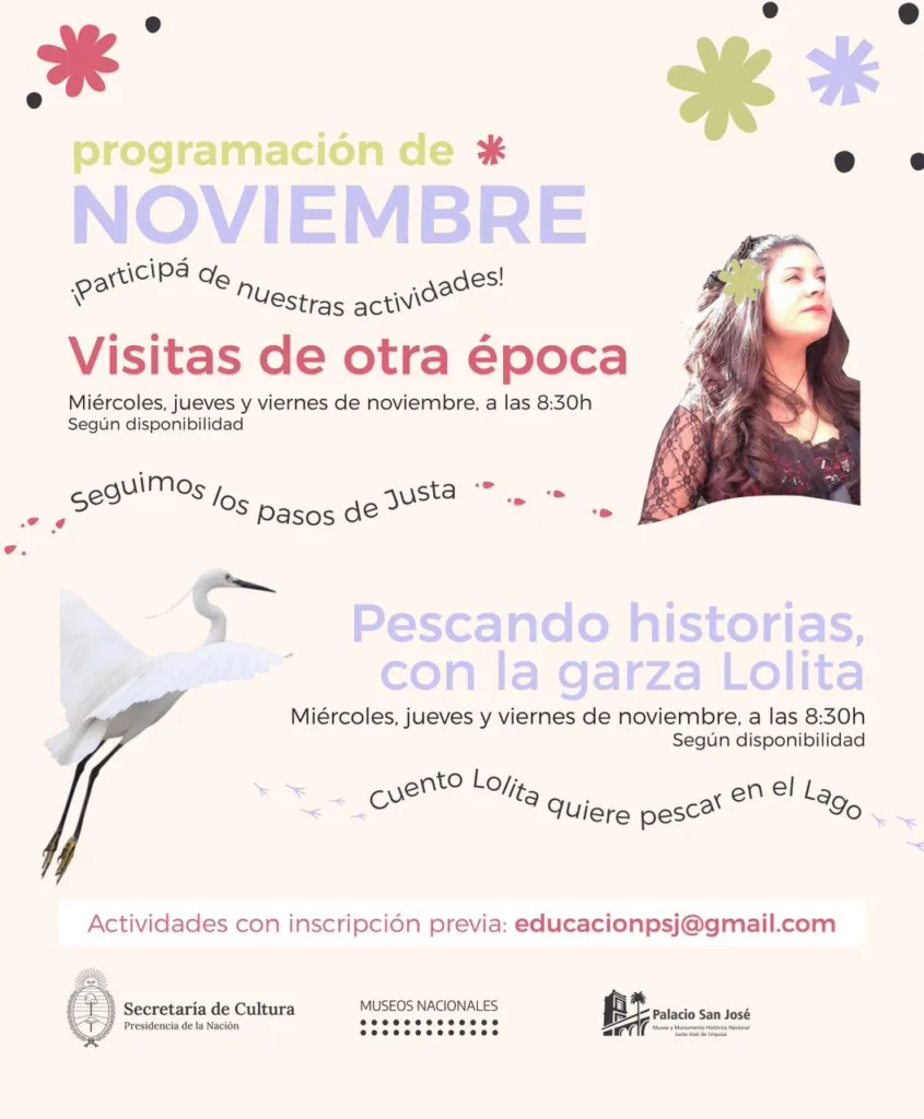 En los próximos días, el Palacio San José organiza diferentes actividades para niños y niñas, las mismas son de carácter recreativas, lúdicas e históricas.