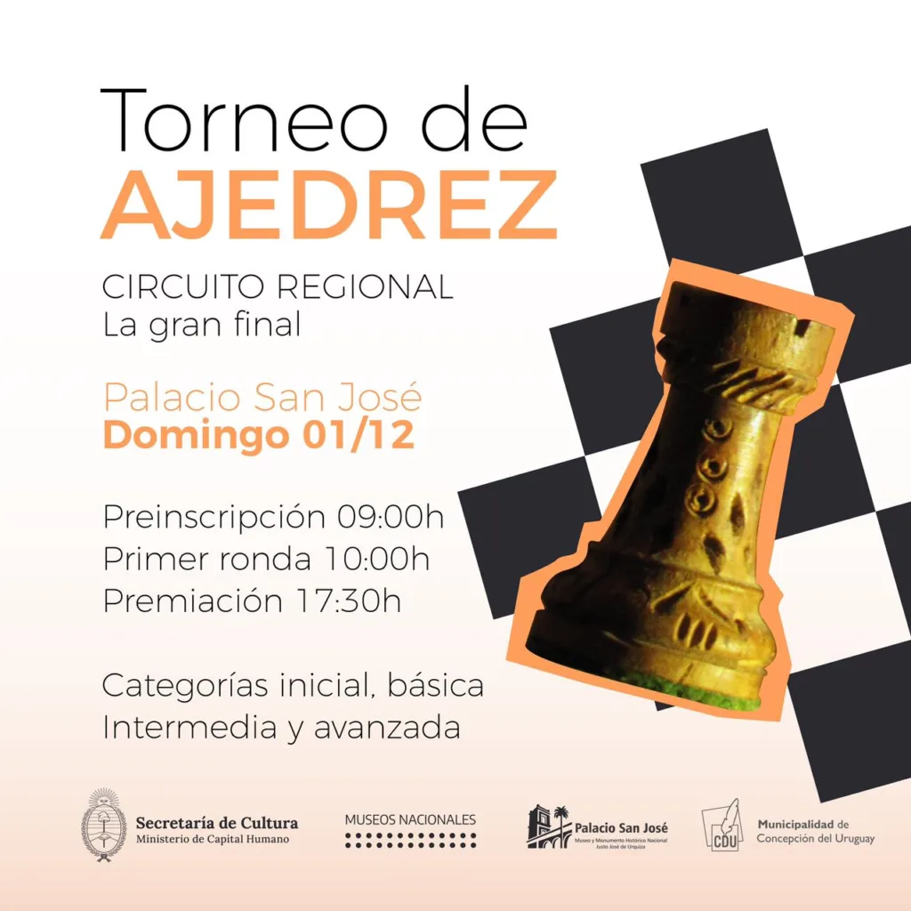 El domingo 1 de diciembre se llevará a cabo en el Palacio San José la gran final del Circuito Regional de Ajedrez. El torneo contará con las categorías inicial, básica, intermedia y avanzada.