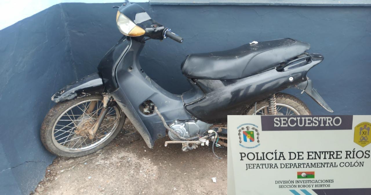 En la mañana de este martes delincuentes sustrajeron una moto en inmediaciones de calle Bachini y Alberdi, en Colón. Por ese motivo, personal de la División Investigaciones de la Departamental de Policía de Colón inició una pesquisa y, tras pocas horas, lograron localizarla en un domicilio en cercanías de donde había sido robada.